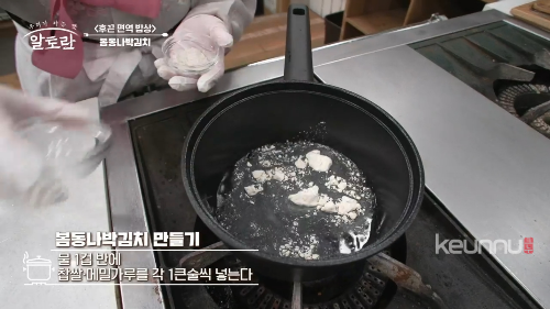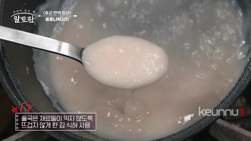 강순의 김치 명인의 봄동나박김치 풀국의 비밀은 메밀가루입니다.