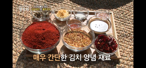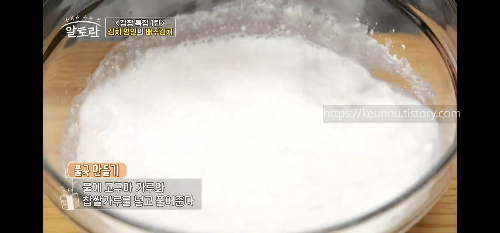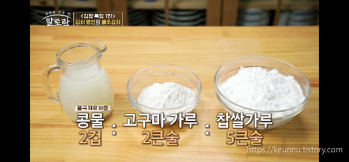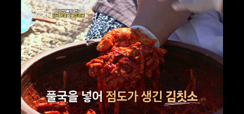 찹쌀가루만 넣으면 김치가 빨리 익는 다고 합니다. 그거를 잡아주는 게 고구마 가루입니다.