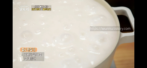 풀국 재료 : 물 5컵, 콩물 2컵, 고구마 가루 2큰술, 찹쌀가루 5큰술