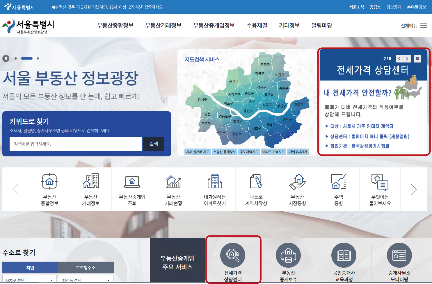 부동산중개업정보 > 전세가격 적정여부 상담센터 (seoul.go.kr)